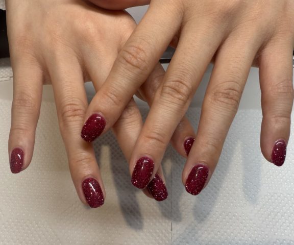 フラッシュラメ こんにちは! スタッフのUchiboriです! お客様ネイルの紹介です👍 まだまだ暑い日が続いていますが、ほんのり秋を思わせる濃厚なカラーも人気です! フラッシュラメで華やかさと季節を先取りするのもおすすめです!