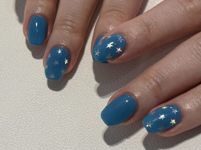 star💫 こんにちは! スタッフのkomamuraです🙋🏼♀️ お客様ネイルのご紹介です◎ お星様がアクセントに🌟 お好きな色でぜひお試しください🥳 こちらはワンカラー➕アート追加でご予約ください!